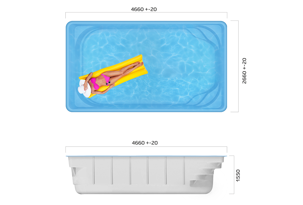 Бассейн «Ален» создан для тех, кто хочет разумно использовать пространство своего участка, не отказываясь от удовольствия плавать и отдыхать в собственном бассейне. Благодаря прямоугольной форме модель позволяет эффективно использовать всю площадь чаши, обеспечивая простор для плавания даже на компактных участках.