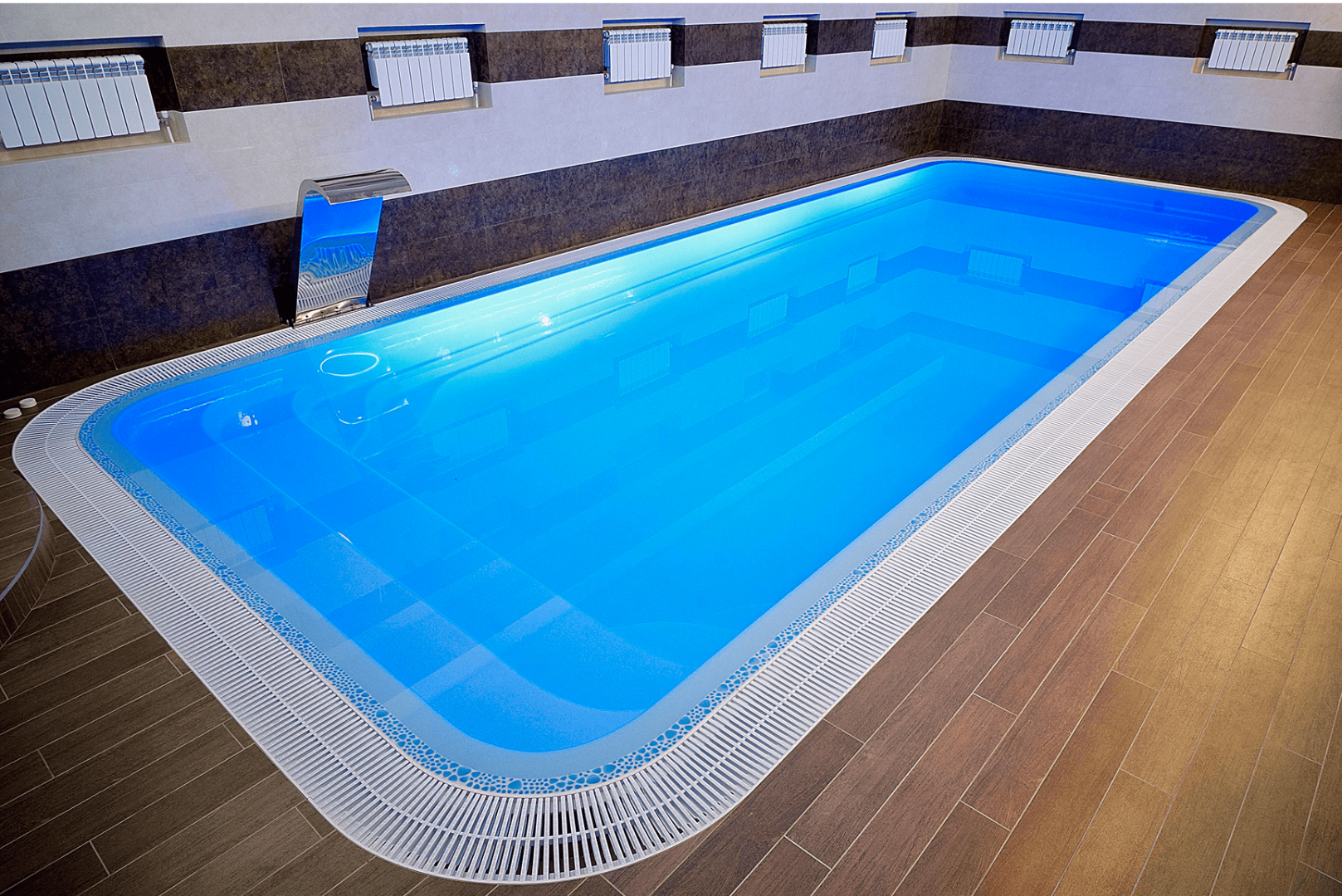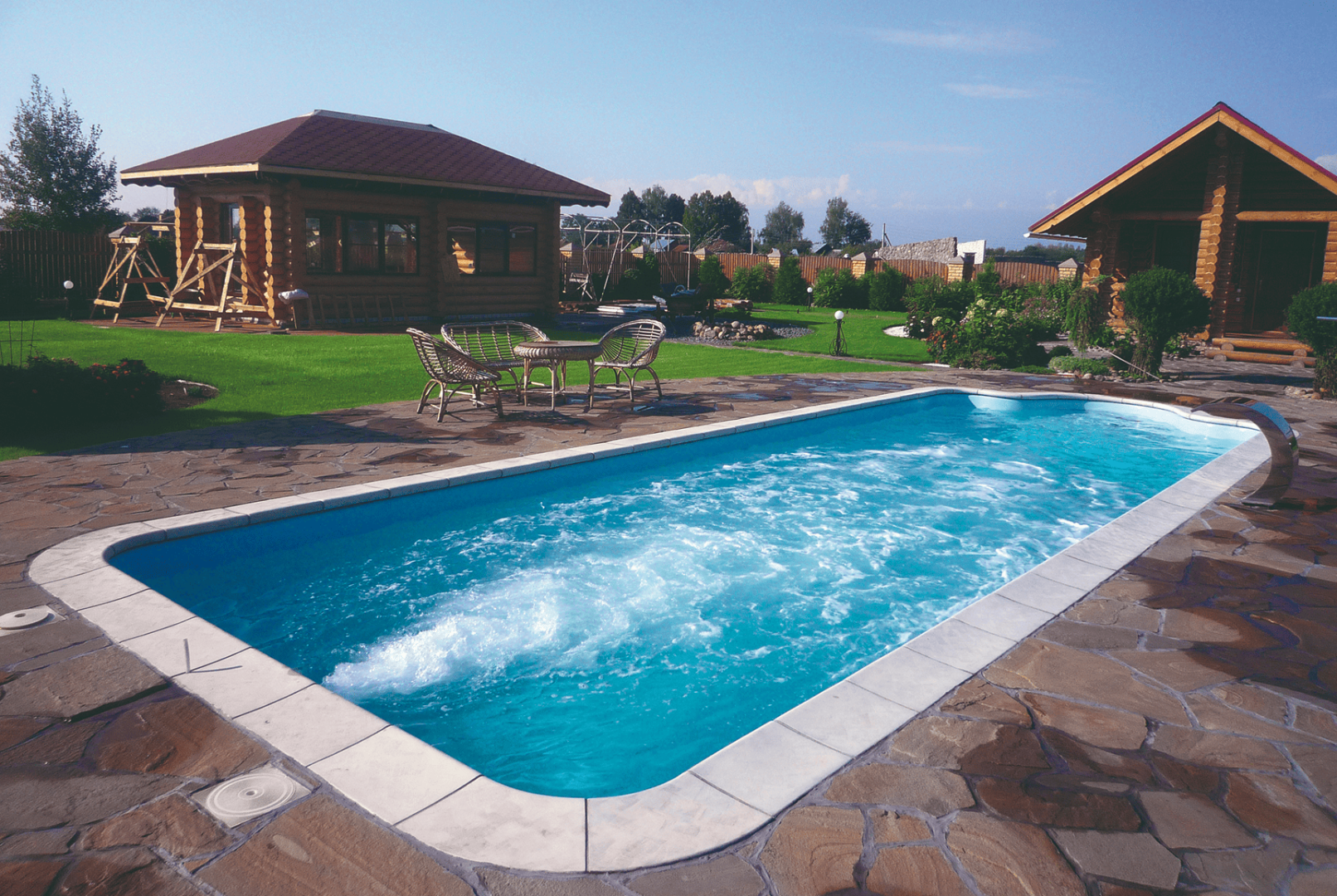 Бассейн нежно-голубого цвета станет маленьким морем на вашем участке. Он дарит потрясающее ощущение чистоты и свежести. Недаром этот цвет – настоящая классика европейских курортов. Откройте каталог любой турфирмы – и вас поразит обилие светло-голубых пятен бассейнов. Чтобы ваш любимый курорт всегда был рядом с вами – выбирайте покрытие Берлинская лазурь.